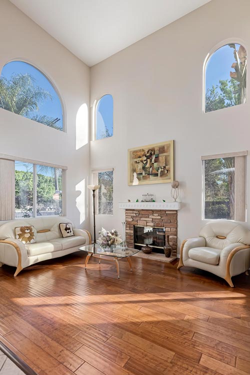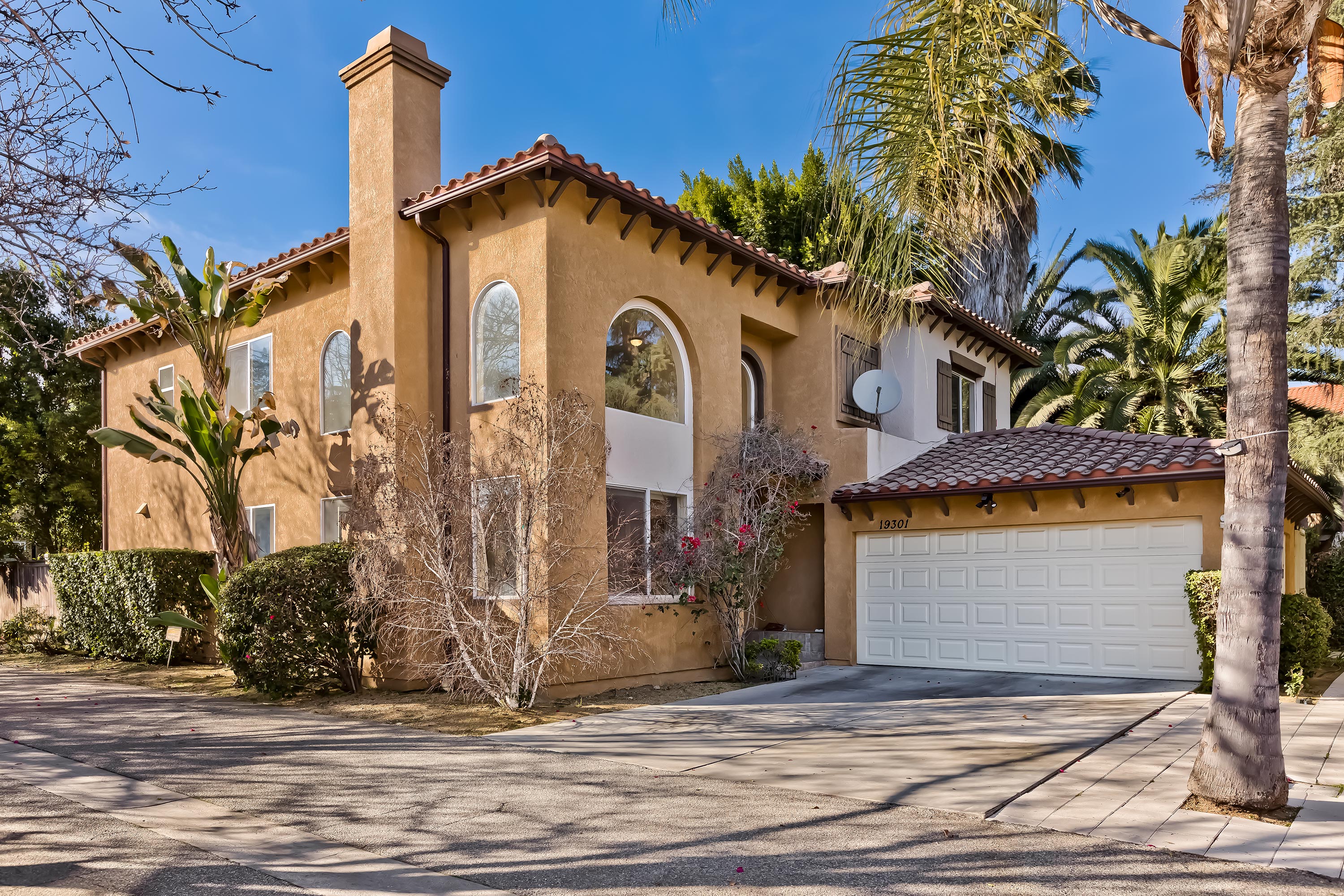 Beautiful modern located in a small gated community in a highly desirable area of Tarzana. The spacious, two-story entry and two-story formal living room, with fireplace, feature large windows that frame gorgeous, fill the home with an abundance of natural light. The formal dining room conveniently set off the spacious kitchen with wood cabinets, granite counters, peninsula. Directly across from the kitchen you’ll find the family room with fireplace, large sliding doors leading into a cozy backyard. The first floor also features a powder room and a bedroom that’s currently being used as a office. The master bedroom features sitting area and a double-sided fireplace which creates a beautiful view from the spa tub on the other side. House is updated with recessed lights and solar panels.
